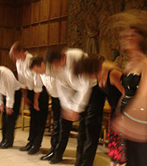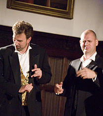 Since no instruments are needed in their performances, they are equally at home on river barges or mountain tops. A long association over twenty years with Astra Zeneca has seen a multitude of performances at wine-filled gala dinners in most of the Cambridge Colleges, usually ending with encores and raucous standing ovations. Many of the arrangements are by ex-Swingles (and past members of the group) Ben Parry and Jonathan Rathbone.